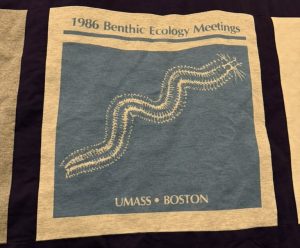Print of the Benthic Ecology Meeting logo from 1986, when it was first hosted at UMass Boston.
