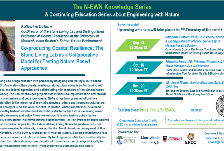 The Network for Engineering With Nature® (EWN) invites you to the N-EWN Knowledge Series: A Continuing Education Series about Engineering with Nature—Co-producing Coastal Resilience: The Stone Living Lab as a Collaborative Model for Testing Nature-Based Approaches.